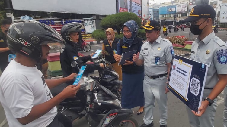 Bandarlampung Suara Kota — Jasa Raharja bersama Bapenda dan Polantas Polri melakukan sosialisasi UU no 22 pasal 74 tahun 2009 di titik titik keramaian yang ada di Lampung, Senin (13/2/2023).