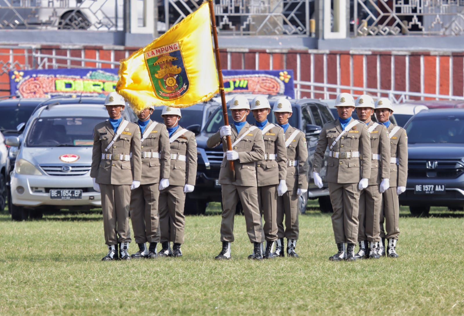 Bertindak sebagai Komandan Upacara pada Peringatan HUT ke-59 Lampung, yakni Mayor Arm Yoan Apreza, lulusan Akademi Militer, dengan Jabatan sehari-hari sebagai Kasdim 0426 Tulang bawang, dan Perwira Upacara Mayor Chk Agung Riza Gunawan S.H, M.Hum, lulusan SEPA PK TNI tahun 2005, dengan jabatan sehari-hari sebagai Kepala Hukum Korem 043 Garuda Hitam.