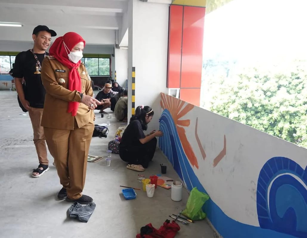 Walikota Bandar Lampung, Eva Dwiana mengatakan, giat mural pada dinding gedung parkir ini dilakukan oleh milenial fest.