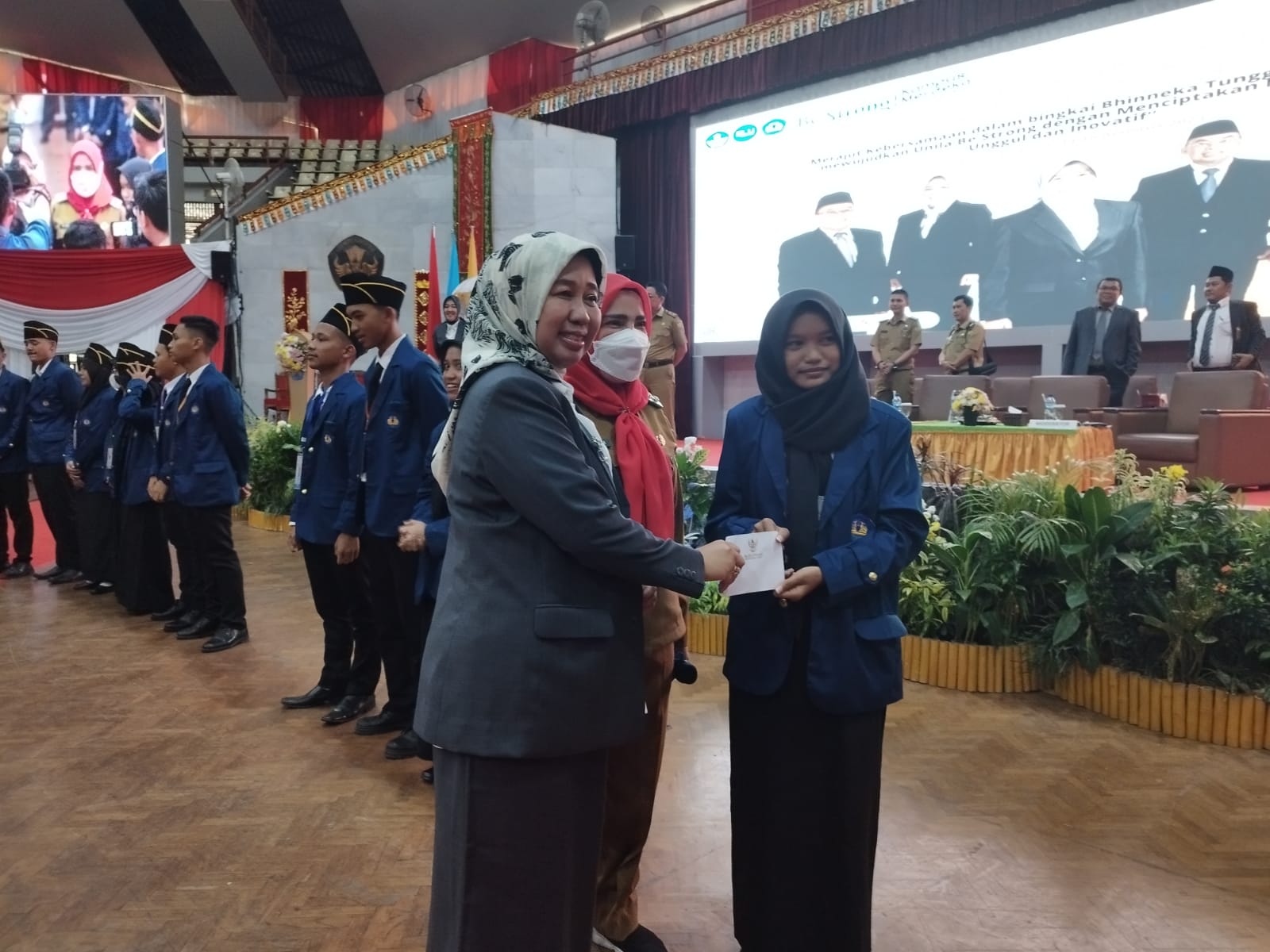 Sementara itu, Walikota Bandar Lampung, Eva Dwiana juga menghadiri serta memberikan materi motivasi kepada peserta PKKMB Unila 2023.