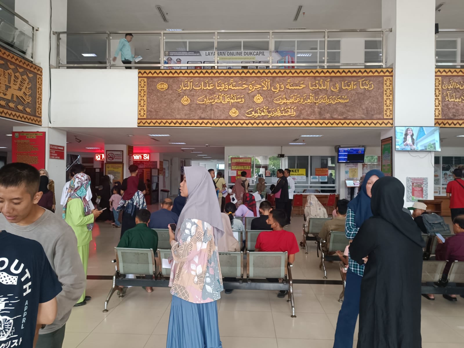 Banyak masyarakat yang datang untuk mengurus berbagai keperluan seperti yang terlihat ramai di Dinas Kependudukan dan Catatan Sipil. (dka)