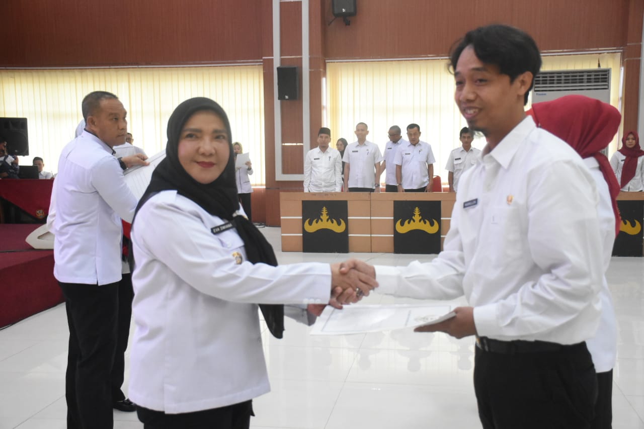 Penyerahan SK dilakukan langsung oleh Walikota Bandar Lampung, Eva Dwiana di Aula Gedung Semergou, kantor pemkot setempat, Rabu (24/4/2024).