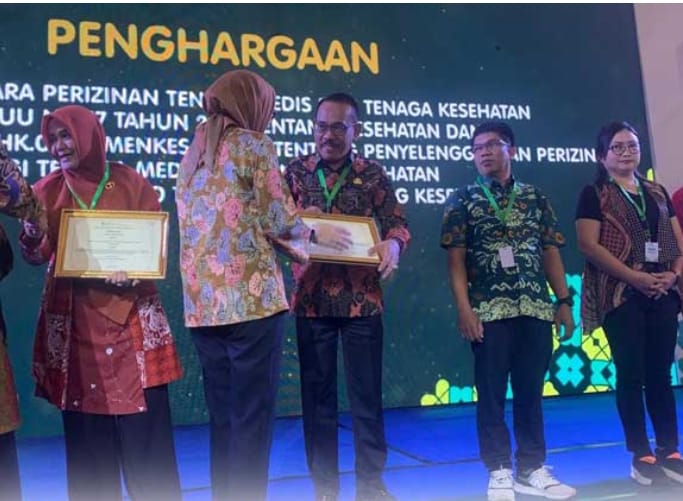 Pemberian penghargaan tersebut, diserahkan langsung oleh Direktur Jenderal Tenaga Kesehatan, Kemenkes RI, Arianti Anaya, kepada Kepala DPMPTSP Kota Bandar Lampung, Muhtadi A. Temenggung, di Swiss Belhotel Harbour Bay, Kota Batam.