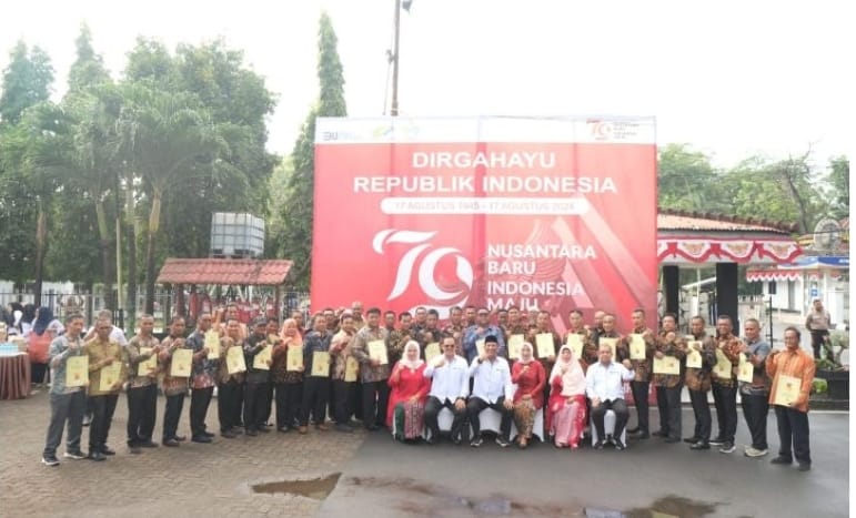 suara kota — Inspektur Upacara, Region Head PTPN I Regional 1 Bapak Didik Prasetyo didampingi SEVP BS Bapak Wispramono Budiman dan SEVP Aset Bapak Ganda Wiatmaja memimpin Upacara Pengibaran Bendera Merah Putih memperingati Kemerdekaan HUT RI Ke-79 di Lapangan Upacara Kantor Regional, Sabtu 17 Agustus 2024.