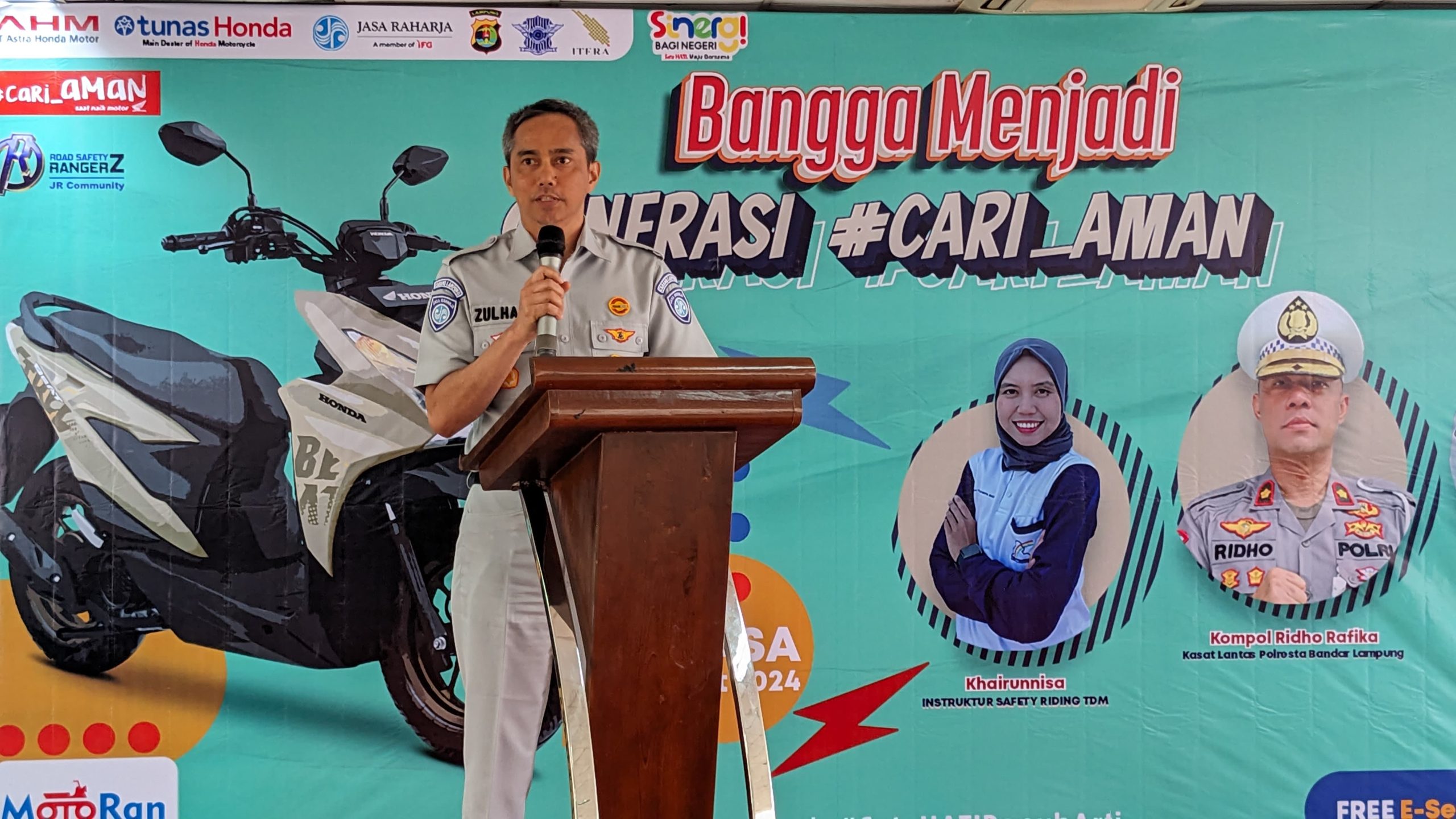 Acara yang mengusung tema “Bangga Menjadi Generasi Cari Aman” ini dihadiri oleh Kepala PT Jasa Raharja Cabang Lampung, Bapak Muhammad Zulham Pane beserta jajaran, perwakilan dari Kampus ITERA, Bapak Muhammad Abi Berkah Nadi, serta Khairunnisa selaku pemateri dari Tunas Dwipa Matra Honda.