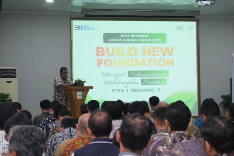 suara kota — Menyambut tahun baru 2025 PTPN I Regional 3 melaksanakan acara doa bersama untuk sukses tahun 2025 dengan tema “Build New Foundation: Merajut Kebersamaan, Membingkai Prestasi” di Ruang Hevea Kantor Regional 3 pada Kamis, 2 Januari 2025 yang dihadiri oleh seluruh karyawan karyawati Kantor Regional 3.