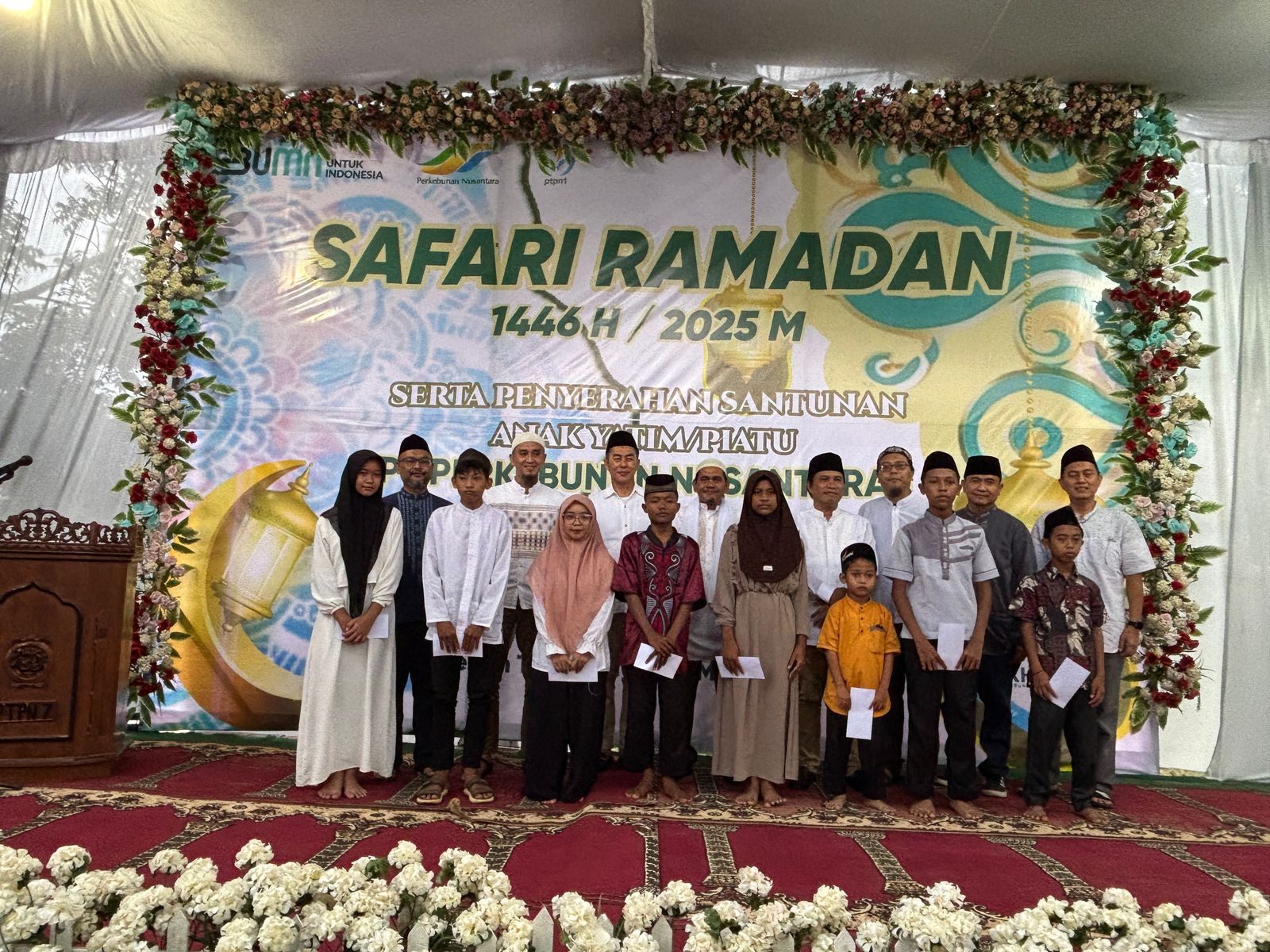 TULUNG BUYUT Suara Kota —Sebanyak 100 anak yatim dari beberapa desa sekitar PTPN I Regional 7 Kebun Tulung Buyut, Way Kanan ikut memeriahkan Safari Ramadan 1446 H di Komplek Kantor Sentral, Kamis (6/3/25). Selain mendengarkan tausiah, makan bersama berbuka puasa, mereka juga diberi tali asih berupa uang oleh perusahaan. Selain itu, sejumlah tokoh masyarakat setempat juga hadir pada acara yang dihadiri Board of Regional Management (BRM) PTPN I Regional 7 dari Bandar Lampung itu.