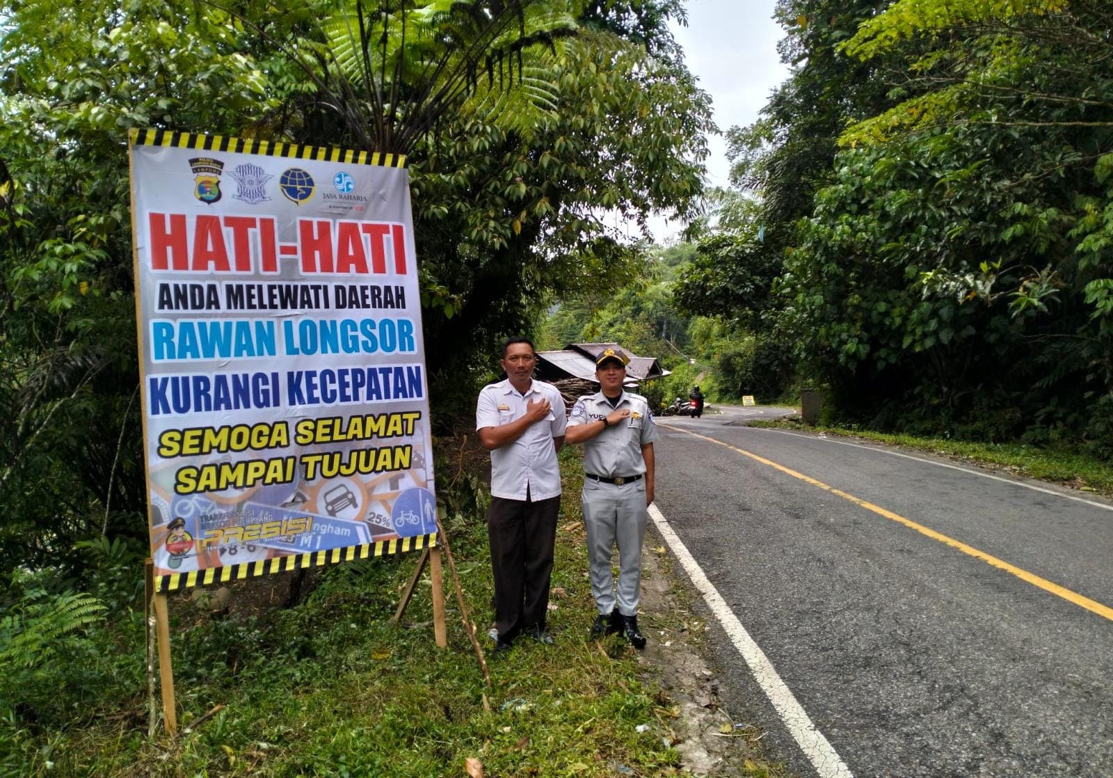 Masih tingginya tingkat kecelakaan di Kabupaten Lampung Barat khusunya di Kecamatan Balik Bukit serta masih tingginya potensi terjadinya bencana longsor di sepanjang Jalan Lintas Barat Pekon Kubu Perahu serta menindak lanjuti kesepakatan Forum Komunikasi Lalu Lintas pada bulan Januari 2025, Jasa Raharja menggandeng masyarakat khususnya Perangkat Desa untuk melakukan Pemasangan Banner yang berisi pesan keselamatan berlalu lintas di beberapa titik daerah rawan bencana longsor yang berada di sepanjang Jalan Lintas Barat Pekon Kubu Perahu Balik Bukit Lampung Barat.