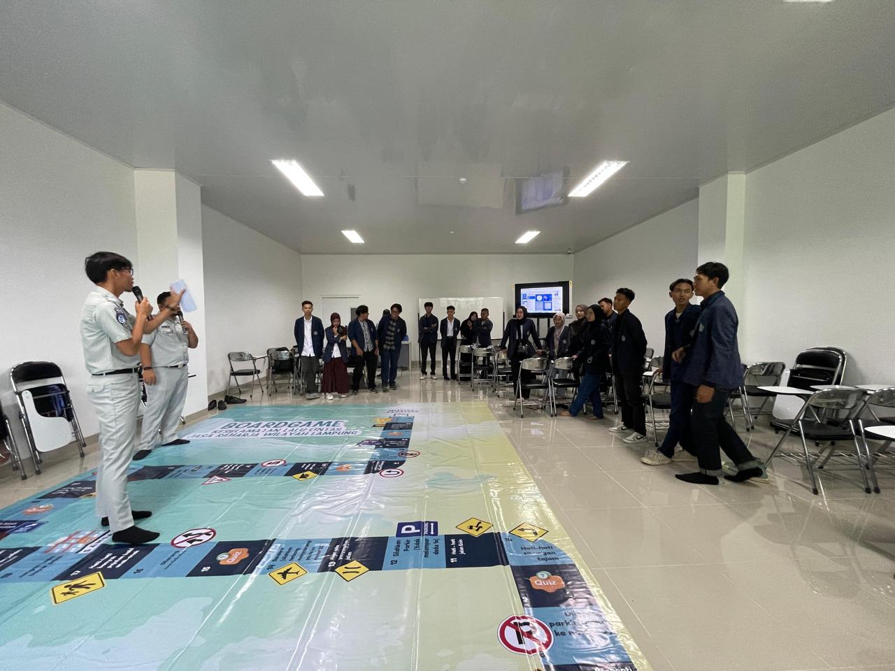 Metode sosialisasi yang dilaksanakan pada kegiatan ini sedikit berbeda, tidak hanya pemaparan materi oleh narasumber di depan kelas, namun sebagai bentuk adaptasi kebutuhan Gen Z yang menjadi peserta, kegiatan dikemas dengan cara bermain. Board Game keselataman lalu lintas yang didesain tim Jasa Raharja Wilayah Lampung berupa permainan lempar dadu di atas spanduk yang terdiri dari beragam tantangan, pertanyaan, informasi dan rambu-rambu lalu lintas. Permainan dilaksanakan berkelompok dimana pemenangnya adalah kelompok pertama yang mencapai titik finish, permainan mengedepankan aspek sportifitas, integritas, dan dikemas menyenangkan juga atraktif.