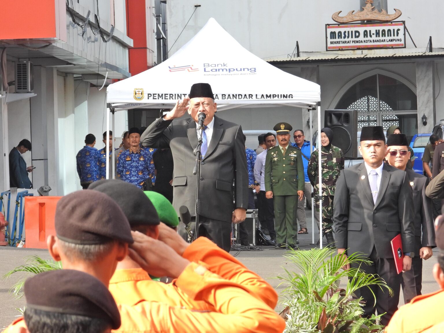 Bandar Lampung Suara Kota – Wakil Wali Kota Bandar Lampung Deddy Amarullah memimpin upacara peringatan Hari Lahir Pancasila yang ke-80 tahun 2025 di halaman Pemkot setempat, Senin (2/6/2025)