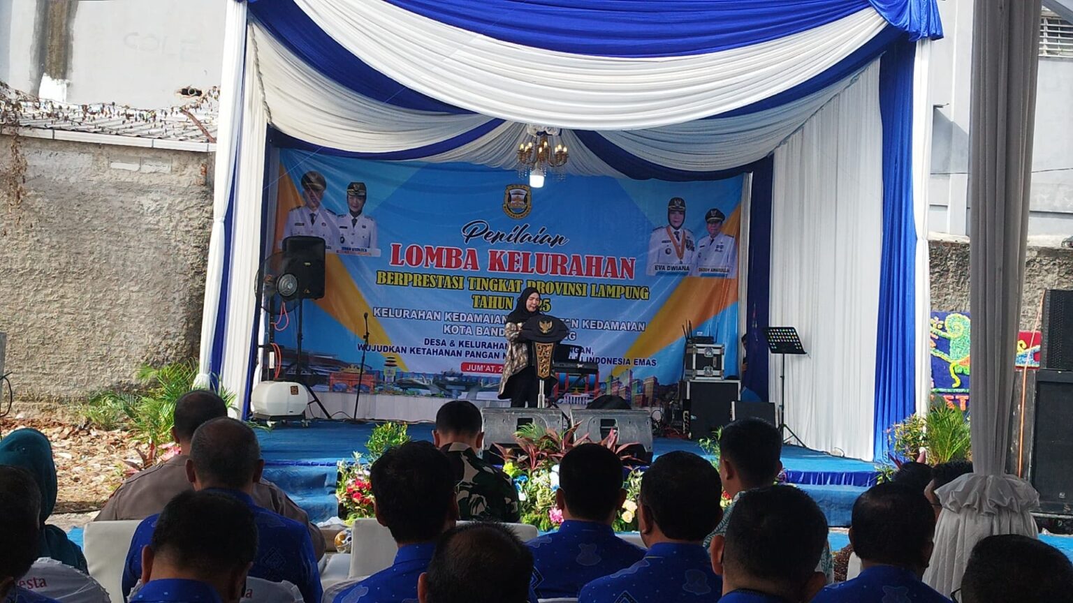 Bandar Lampung Suara Kota – Walikota Bandar Lampung Eva Dwiana menghadiri penilaian kelurahan di Kelurahan Kedamaian, Kecamatan Kedamaian, Jumat (20/6/2025).