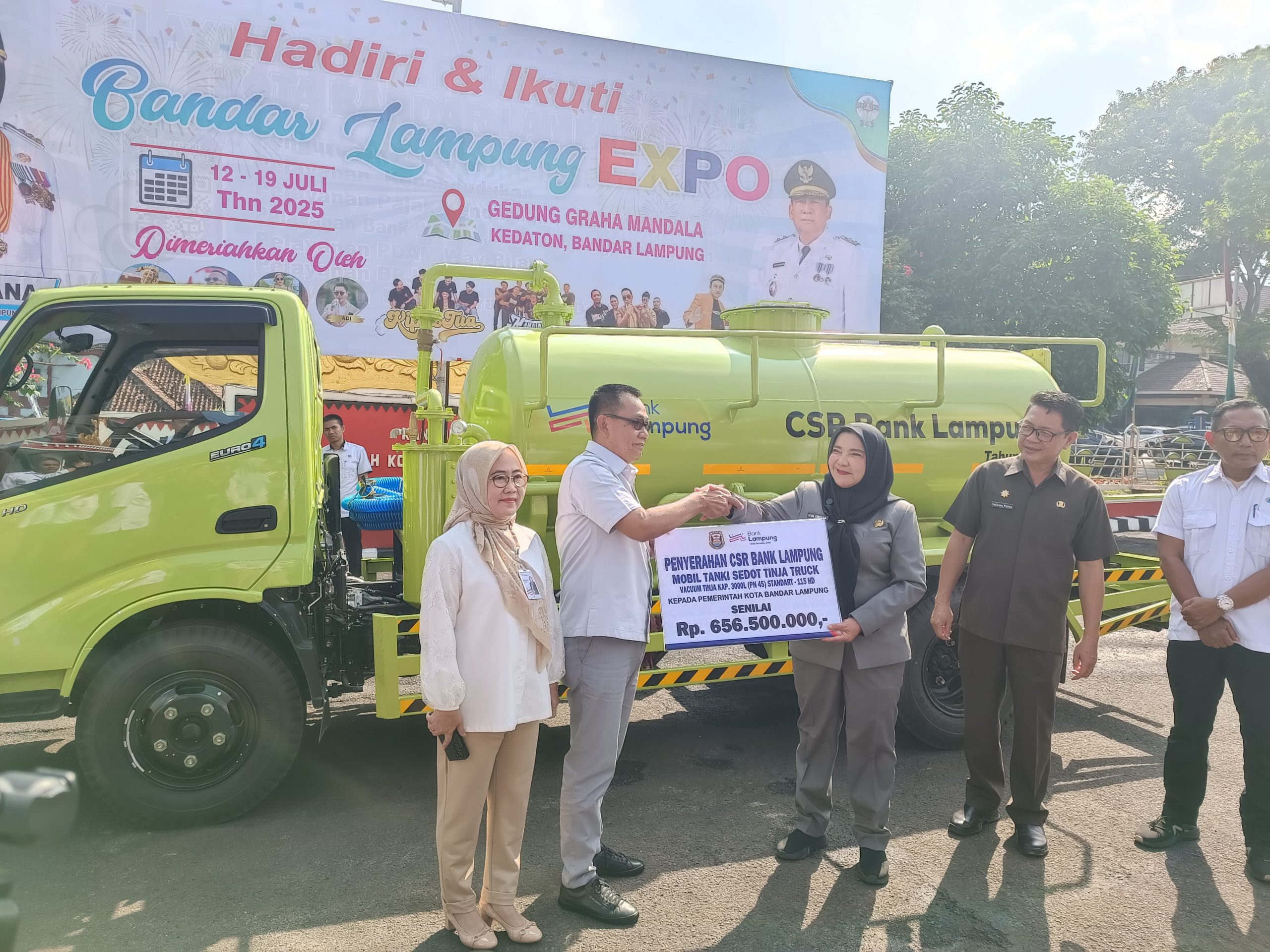 BANDARLAMPUNG Suara Kota – Pemerintah Kota (Pemkot) Bandar Lampung menerima bantuan satu unit mobil tangki tinja senilai Rp656,5 juta dari Bank Lampung.