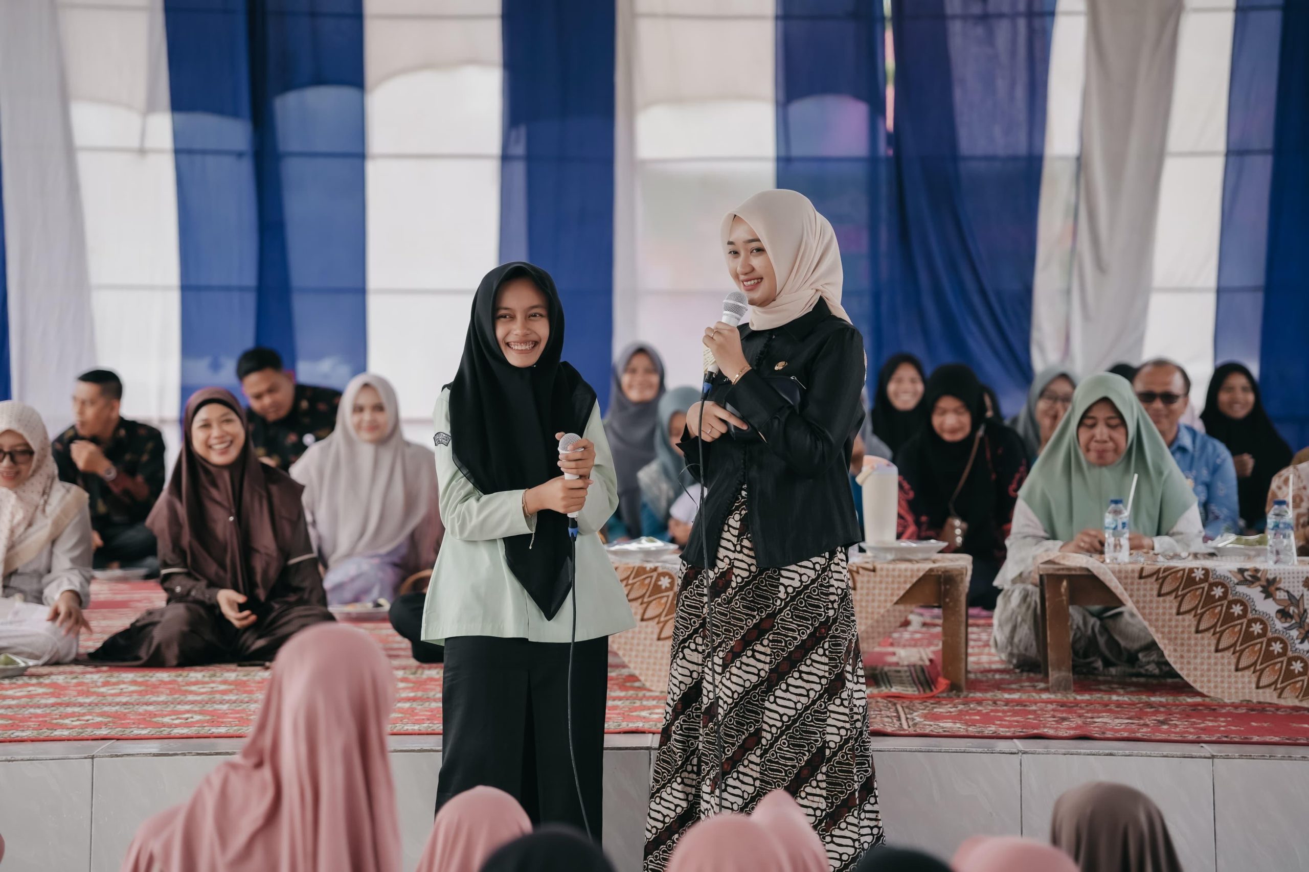 Suasana kunjungan berlangsung hangat dan penuh canda. Wagub Jihan berinteraksi langsung dengan para santri melalui tebak-tebakan interaktif.