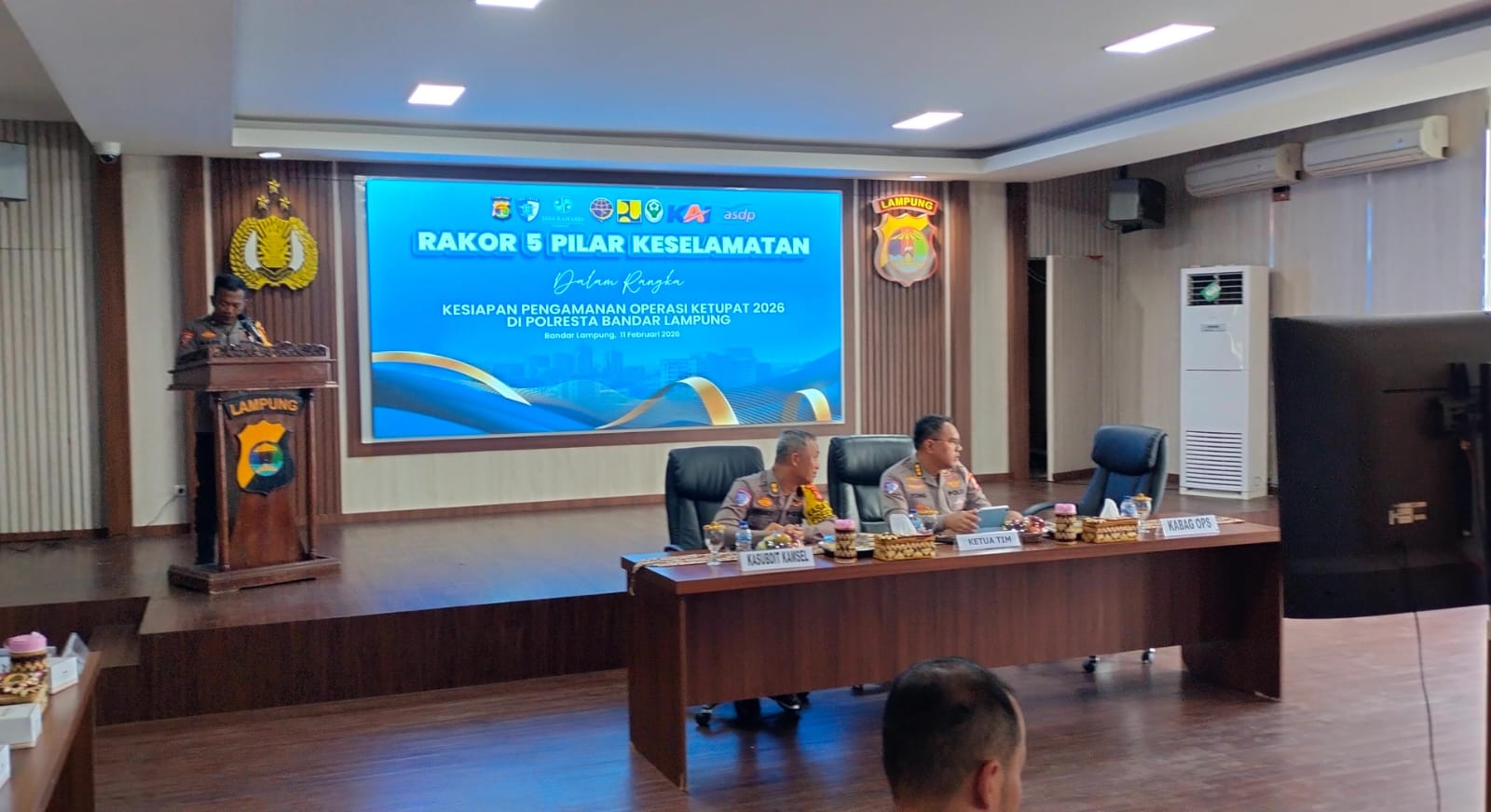 Bandar Lampung Suara Kota — Forum Lalu Lintas dan Angkutan Jalan (FLLAJ) Kota Bandar Lampung menggelar rapat koordinasi pada 11 Februari 2026 di Aula Patriatama Polresta Bandar Lampung. Kegiatan ini membahas kesiapan pengamanan (PAM) Lebaran 2026, khususnya di wilayah Kota Bandar Lampung. Rapat tersebut dihadiri Kasubdit Manajemen Operasi dan Rekayasa (Jemenopsrek) Ditkamsel Korlantas Polri, PT Jasa Raharja, Ditlantas Polda Lampung, serta unsur 5 Pilar Keselamatan Provinsi Lampung dan Kota Bandar Lampung.